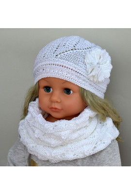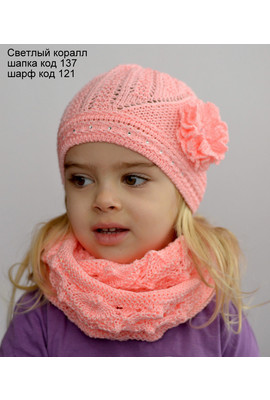 Шапка ажурная для девочек от 2 лет. Весна/осень. Размеры: 48-54. Цвета: розовый, белый, молоко, бирюза, сиреневый, светло-коралловый. Пряжа на солнце блестит. Украшена стразами и вязаным цветком. Шапка хорошо тянется. Шарф вязаный, ажурный. Надевается ...