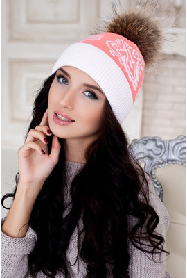 Главная страница Женские шапки Осень-Зима ВЯЗАНАЯ ШАПКА "НОРДИК" - 4182 белый+коралл