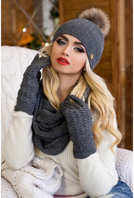ЖЕНСКИЙ КОМПЛЕКТ «АРИЗОНА» (ШАПКА, ШАРФ ВОСЬМЕРКА И ПЕРЧАТКИ) - 4194-38 тёмно-серый