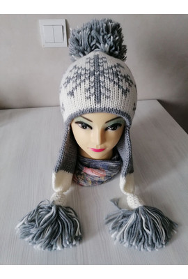 УШАНКА ЖЕНСКАЯ ДВОЙНАЯ "ЛЕНА" - серо-белая
