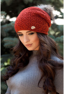 ВЯЗАНАЯ АЖУРНАЯ ШАПКА "АФРОДИТА" - 4322 терракот