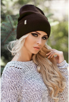 ДВОЙНАЯ ШАПКА-КОЛПАК С ПОДВОРОТОМ - 5070 тёмный кофе