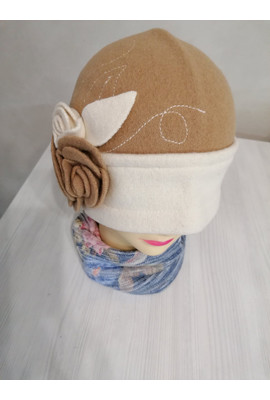 Шапка утеплена флисом. Закреплена сзади. Цвет - светло-бежевый. Состав: 60% шерсть, 40% акрил. Материал: Шерсть с акрилом; Растяжимость: средняя