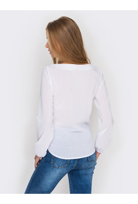 Стильная, легкая блуза с рукавами-фонариками. Выполнена модель из шифона – дышащего и приятного на ощупь материала, поэтому она подойдет даже для ежедневной носки. Спереди блуза украшена бантиком – прямо под вырезом горловины, а чуть ниже - расположены...