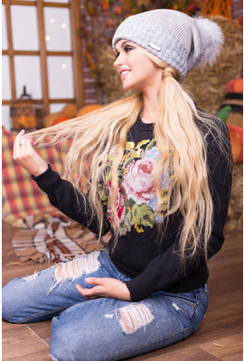Главная страница Женские шапки Осень-Зима ШАПКА С ПОМПОНОМ - 16119 серый+лён