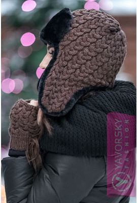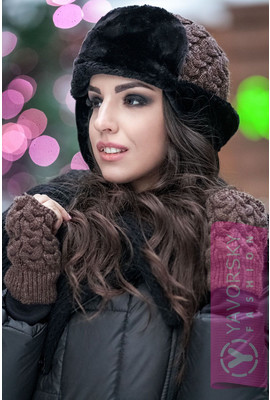КОМПЛЕКТ ШАПКА-УШАНКА+МИТЕНКИ - 181 коричневый