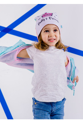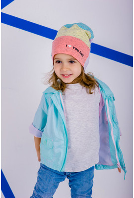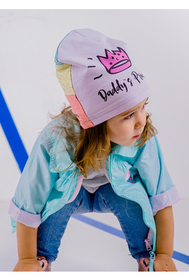 Нежная шапочка для девочки представлена в персиковом и сереневом цвете. Модель "Джозефа" примечательна тем, что ее можно носить и задом наперед. С одной стороны головной убор декорирован стильным накатом, который понравится всем папиным принцессам, с другой стороны - широкие полосы приятных пастельных тонов.