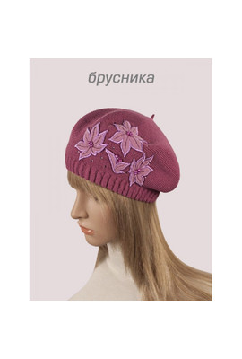 • Эта очаровательная модель особенно подойдет кокетливым девушкам, которые не хотят затеряться в толпе. Изящный берет гладкой вязки с крупной рельефной резинкой украшен экзотичной цветочной аппликацией, перламутровыми бусинами и мелкими стразами. Он, несомненно, не только выгодно подчеркнет вашу красоту, но и надежно защитит вас от непогоды.