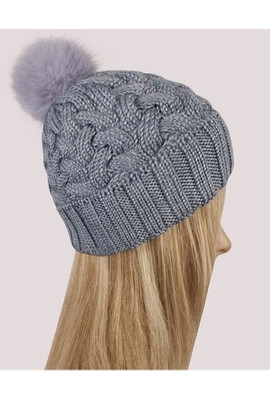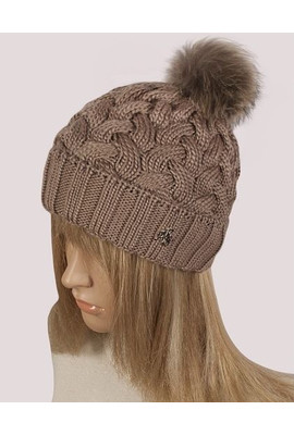 ШАПКА С ПОМПОНОМ ИЗ МЕХА ПЕСЦА - WH 572 капучино