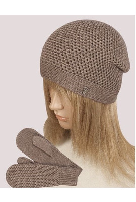 КОМПЛЕКТ ИЗ ШАПКИ И ВАРЕЖЕК - WK 563 капучино