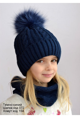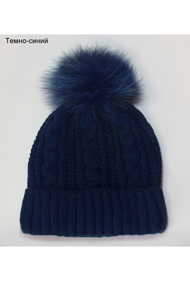 ШАПКА "ВЕНЕРА" (ПОМПОН НАТУР. ПЕСЕЦ) - 072 синий