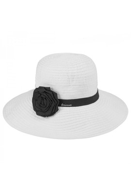 Главная страница Женские летние шляпы и кепки Белая шляпа с черным цветком - 001-02.01