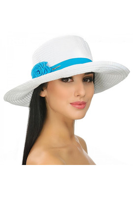 Белая ШЛЯПА С голубым ЦВЕТКОМ - 001-02.38