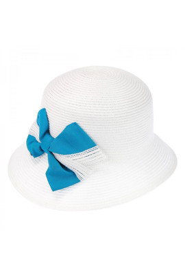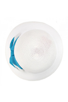 Шляпка с ассиметричным полем белая с бирюзовым бантом сбоку - 109-02.38