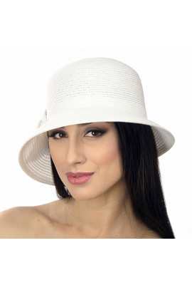 Женская шляпа Del Mare Модель: 109 Цвет: 02 Состав: capron, polyester Ширина поля: 5,5-8 см. Диаметр шляпы: 27 см. Высота тульи: 10 см. Размер: 56-58 Цвет основной: белый. Цвет дополнительный: нет. Аксессуар: бант. Детали: пластиковый каркас.