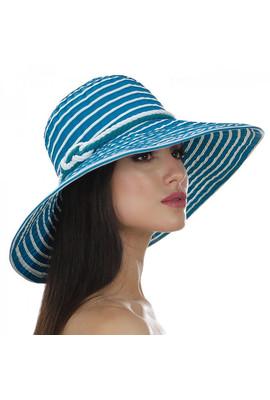 Полосатая шляпа с узлом на тулье темно-бирюзовая - 013А-38