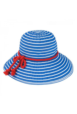 Женская шляпа Del Mare Модель: 027 Цвет: 04.13 Состав: cotton, polyester Ширина поля: 11,5 см. Диаметр шляпы: 37 см. Высота тульи: 8 см. Размер: 56-57 Цвет основной: голубой. Цвет дополнительный: белый. Аксессуар: канат. Детали: моделируемое поле, двой...