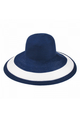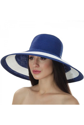 Женская шляпа Del Mare Модель: 101 Цвет: 05 Состав: capron, polyester Ширина поля: 14,5 см. Диаметр шляпы: 45 см. Высота тульи: 10 см. Размер: 56-58 Цвет основной: синий. Цвет дополнительный: белый. Аксессуар: нет. Детали: пластиковый каркас.