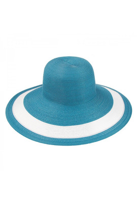 Женская шляпа Del Mare Модель: 101 Цвет: 38 Состав: capron, polyester Ширина поля: 14,5 см. Диаметр шляпы: 45 см. Высота тульи: 10 см. Размер: 56-58 Цвет основной: голубой. Цвет дополнительный: белый. Аксессуар: нет. Детали: пластиковый каркас.