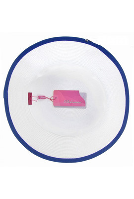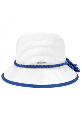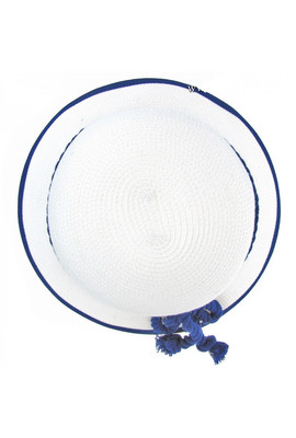 Женская шляпа Del Mare Модель: 033 Цвет: 02.05 Состав: capron, paper, polyester Ширина поля: 7 см. Диаметр шляпы: 29 см. Высота тульи: 10 см. Размер: 56-57 Цвет основной: белый. Цвет дополнительный: синий. Аксессуар: канат. Детали: моделируемое поле