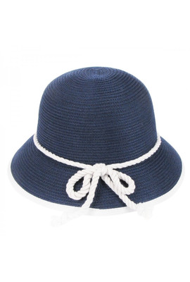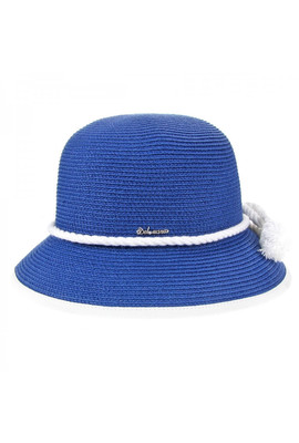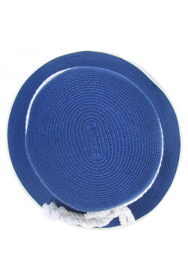 Женская шляпа Del Mare Модель: 033 Цвет: 05 Состав: capron, paper, polyester Ширина поля: 7 см. Диаметр шляпы: 29 см. Высота тульи: 10 см. Размер: 56-57 Цвет основной: синий. Цвет дополнительный: белый. Аксессуар: канат. Детали: моделируемое поле