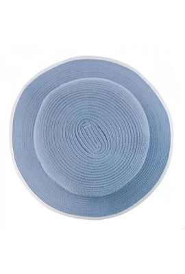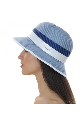 Женская шляпа Del Mare Модель: 103 Цвет: 03 Состав: cotton, capron,cotton,polyester Ширина поля: 6 см. Диаметр шляпы: 30 см. Высота тульи: 10 см. Размер: 56-58 Цвет основной: голубой. Цвет дополнительный: белый. Аксессуар: лента. Детали: нет