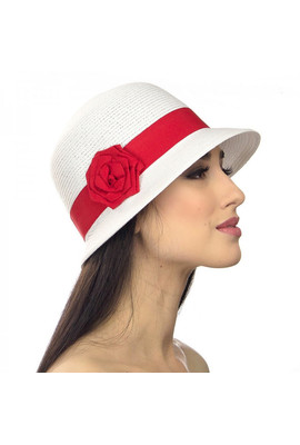 ЛЕТНЯЯ ШЛЯПКА С ЦВЕТКОМ - 104-02.13 с красным цветком
