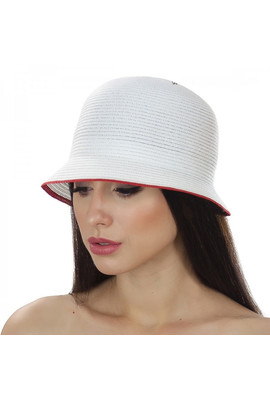 Женская шляпа Del Mare Модель: 105 Цвет: 02.13 Состав: capron, polyester Ширина поля: 5 см. Диаметр шляпы: 25 см. Высота тульи: 10 см. Размер: 56-58 Цвет основной: белый. Цвет дополнительный: красный.