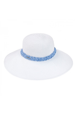 Белая летняя шляпа с голубой лентой - 107-02.03