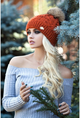 Данная модель выполнена из смеси натуральной шерсти альпаки и мериноса с добавлением волокон эластана и акрила. Важным преимуществом этой вязанной зимней шапки является удачное сочетание великолепного внешнего вида и высокой практичности — она очень теплая и позволяет девушке не замерзнуть даже самой холодной зимой. Оригинальное сочетание цветов и мягкий пышный бубон придают изделию необычный и задорный вид.