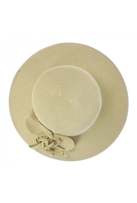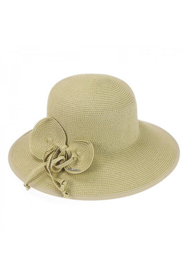 Красивая летняя шляпа бежевого цвета с украшением сбоку - 133-10