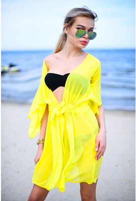 ТУНИКА" ПЛЯЖ", ОСНОВА ШИФОН. ПОЯС НА ЗАВЯЗКУ.