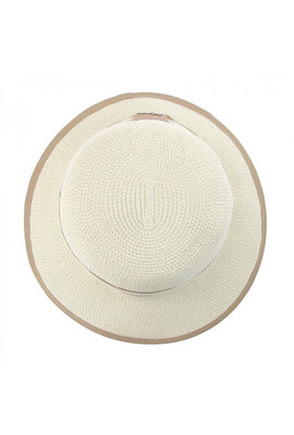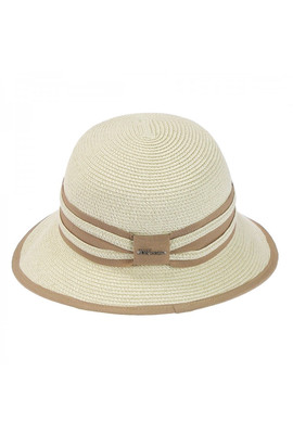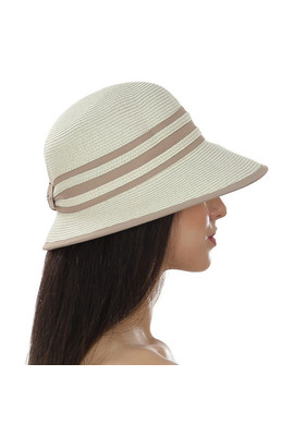 Женская шляпа Del Mare Модель: 140 Цвет: 09.30 Состав: capron paper Ширина поля: 4 -8 см. Диаметр шляпы: 28 см. Высота тульи: 8 см. Размер: 56-58 Цвет основной: бежевый. Цвет дополнительный: коричневый. Аксессуар: лента. Детали: пластиковый каркас.