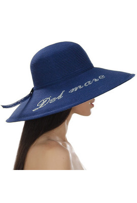Шляпа Дель Мар с надписью стразами на поле синего цвета - 135-05