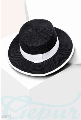 Летняя соломенная шляпа классической модели с мягкими узкими полями, контрастной декоративной отделкой, регулирующим ремешком и лентой для комфортной посадки. Цвет: Бело-черный Размер на фото: s