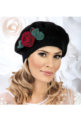 Чёрный берет с красной розой "Сарита" - 018