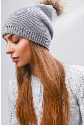 ШАПКА-ЧУЛОК С МЕХОВЫМ ПОМПОНОМ - 26811-4 светло-серый