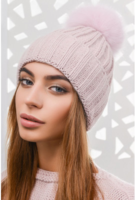 Отзывы Шапка с отворотом и меховым бубоном - 26816-15 пудра - Интернет-магазин - ELENKA