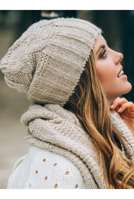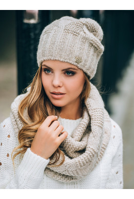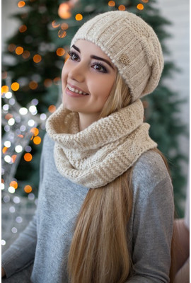 Привлекательный женский вязаный комплект «Нобелия» имеет молодежный дизайн, создан на основе средней узорной вязки. Шарф-хомут и шапка хорошо сочетаются с верхней одеждой, освежают образ и подчеркивают достоинства внешности. Головной убор имеет тонкую флисовую подкладку, декорирован небольшим логотипом компании со стразами. При производстве комплекта задействована шерсть, а также другие современные материалы с высокими потребительскими характеристиками: коттон, полиэстер, акрил.