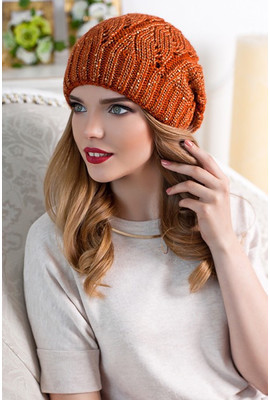 Шапка «Амалия» декорированная пайетками - 4305 терракот - Интернет-магазин - ELENKA
