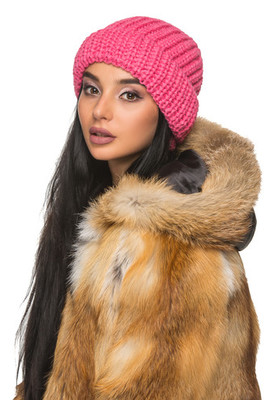 Розовая молодёжная шапка с подворотом - 1091 - Интернет-магазин - ELENKA
