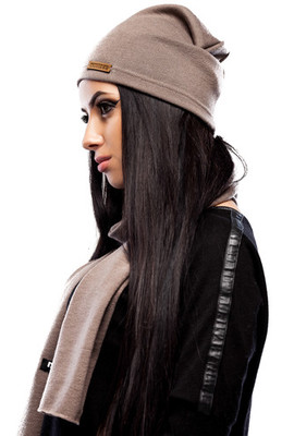 Изображения Женская трикотажная шапка "Дели" - 3455 тёмный беж - Интернет-магазин - ELENKA