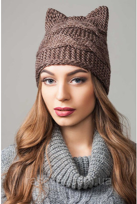 ВЯЗАНАЯ ШАПКА С УШКАМИ "KATE" - CS 45306 коричневый - Интернет-магазин - ELENKA