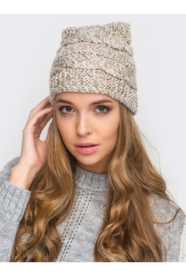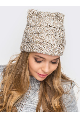 ВЯЗАНАЯ ШАПКА С УШКАМИ "KATE" - CS 45322 бежевый меланж