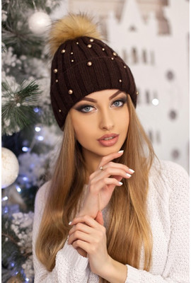Главная страница Женские шапки Осень-Зима Модная шапка с бусинами "Модена" 5096 коричневый