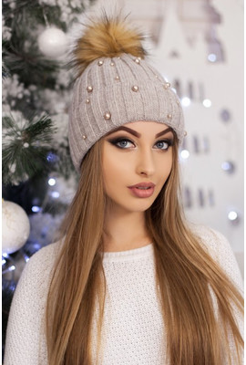 МОДНАЯ ШАПКА С БУСИНАМИ "МОДЕНА" 5096 светлый кофе