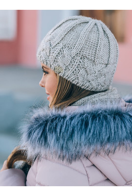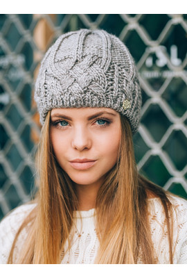 Вязаная шапка «Камелия» - модный женский головной убор одинарного типа. Дополнительный обогрев обеспечивает качественная флисовая подкладка. Изделие создано с использованием толстой узорной вязки. Шапка украшена логотипом и небольшими стразами. При создании изделия применяется шерсть альпаки и мериноса. Несмотря на то, что шапка одинарная, она очень теплая, подходит для суровой зимы.