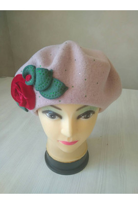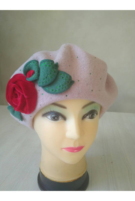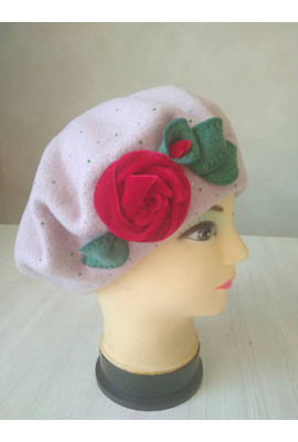 БЕРЕТ С КРАСНОЙ РОЗОЙ "САРИТА" - 540 пыльная роза