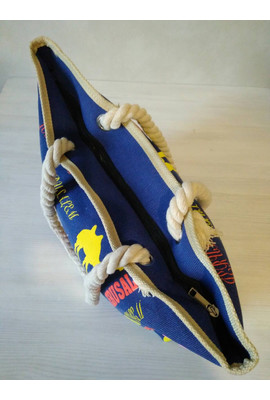 • Пляжная сумка с яркой накаткой выполнена из плотного коттона. Закрывается на молнию и имеет внутренний карманчик на молнии. Завершают образ канатные ручки, которые продеты в металические кольца. Данная модель прекрасно держит форму, и стильно выглядит. С такой сумкой очень удобно ходить на пляж или просто прогуляться по летнему городу.
