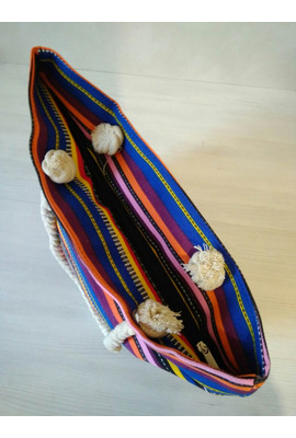 • Сумка пляжная выполнена из плотной льняной ткани с  цветным рисунком. Ручки изготовлены из мягких канатов. На подкладке . Закрывается на молнию. Канатные ручки продеты в металлические кольца, что придаёт сумке стильный вид. Легкая, очень удобна в носке. Подойдет для пляжа  и города.